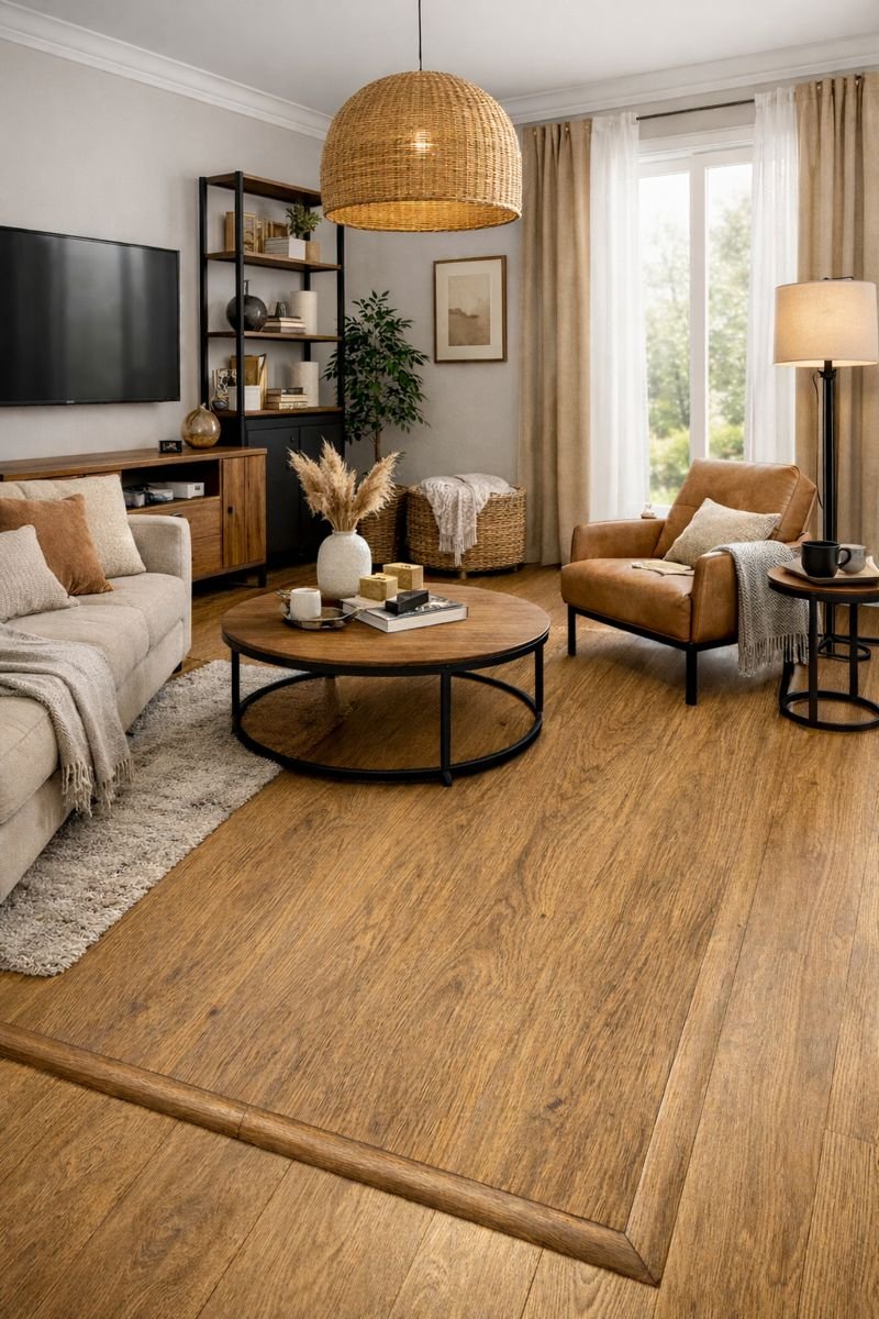 – اسم المنتج: باركيه SPC، مصمم ليمنح مظهر الخشب الطبيعي مع متانة عالية.
