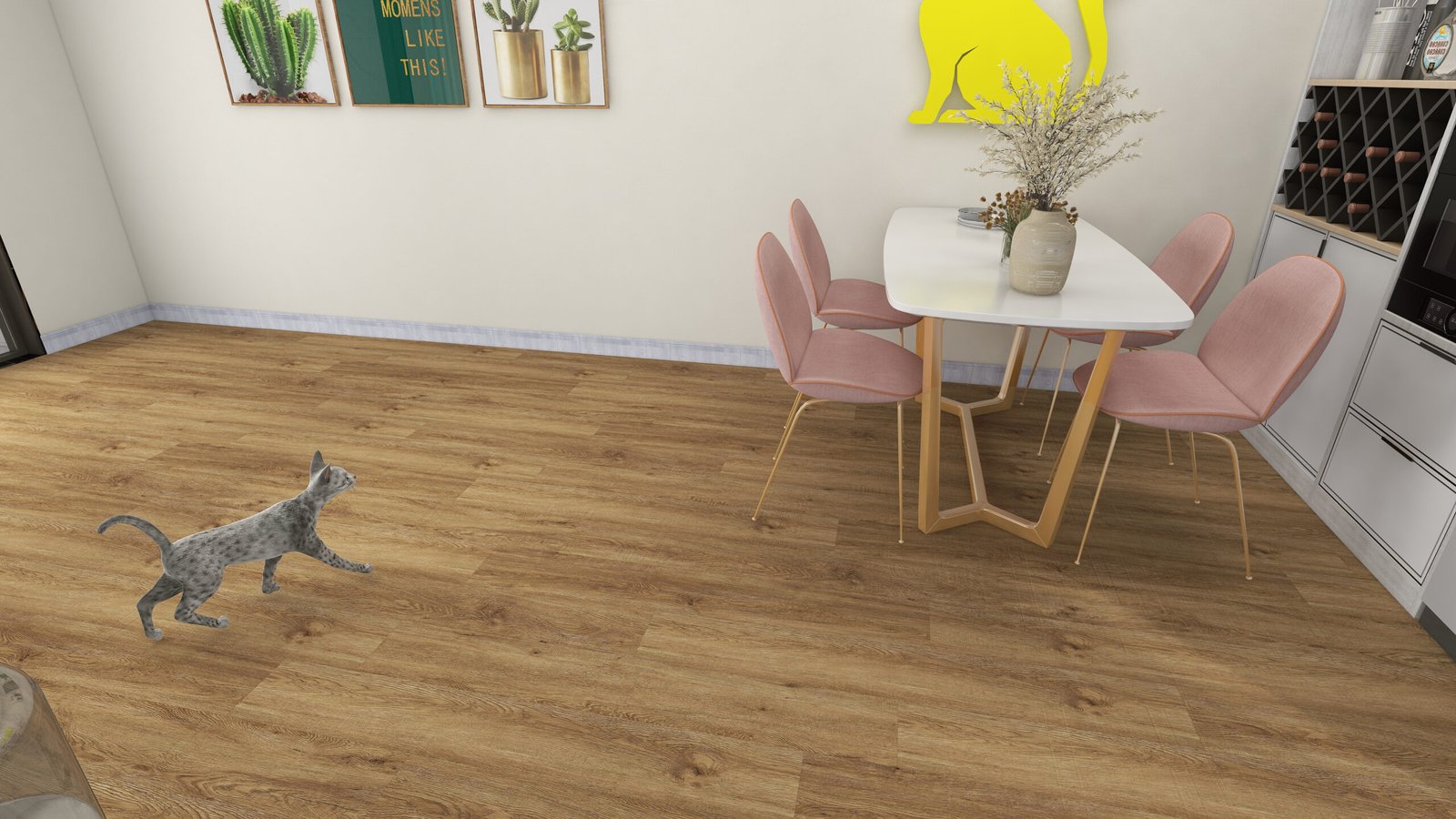 – اسم المنتج: باركيه SPC، مصمم ليمنح مظهر الخشب الطبيعي مع متانة عالية.
