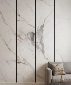 – اللون: ابيض مع عروق رمادية ,وذهبية مما يضفي مظهرًا طبيعيًا وأنيقًا يشبه الرخام الحقيقي.