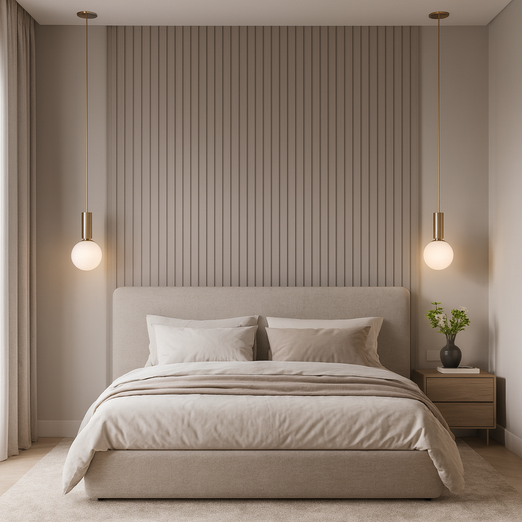 لون اللوح القماشي البيج على رمادي يمنح الجدار إحساساً بالدفء والراحة، ويضيف لمسة راقية تناسب جميع أنماط الديكور، سواء كانت حديثة، كلاسيكية أو مودرن.
