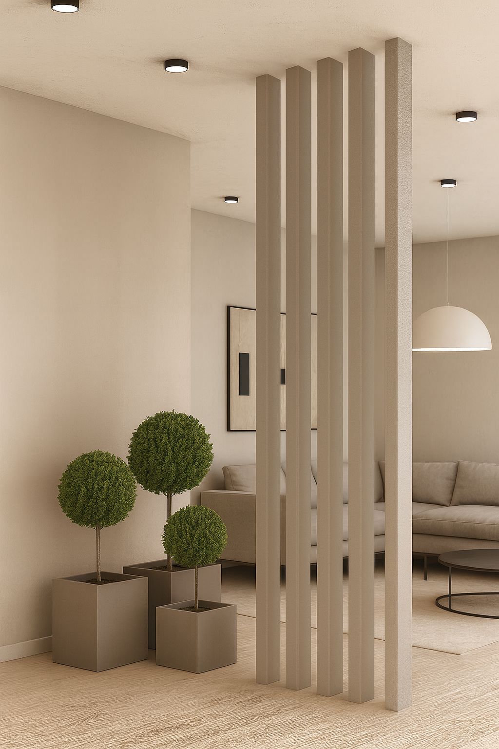 :_ تيوبات فاصلة بين المساحات الداخلية، توفر تقسيمًا أنيقًا وعصريًا للمكاتب والمنازل.