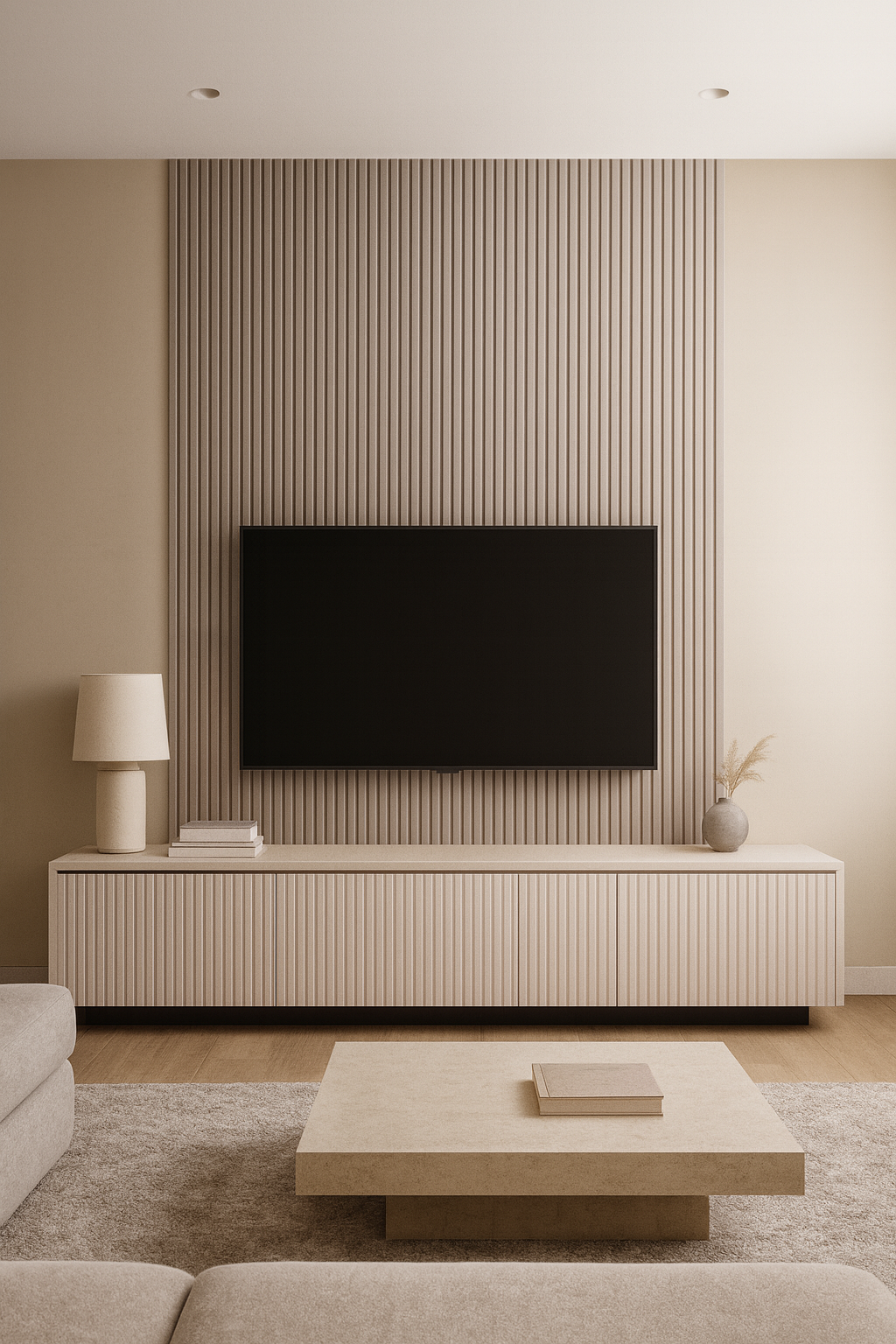 لون اللوح القماشي البيج يمنح الجدار إحساساً بالدفء والراحة، ويضيف لمسة راقية تناسب جميع أنماط الديكور، سواء كانت حديثة، كلاسيكية أو مودرن.